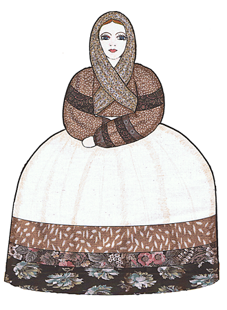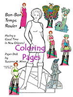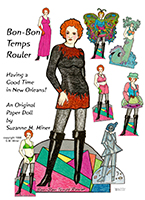 In the mid 1990s I started creating paper dolls again. My first serious effort was a large "bad girl" named Bon Bon Temps Rouler. She projects a New Orleans spirit & won second place at the 1998 UFDC convention in New Orleans. I rewarded myself with a 120 pencil set of Prismacolor colored pencils!