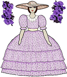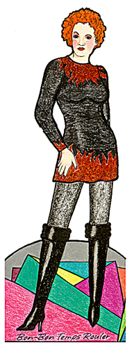 In the mid 1990s I started creating paper dolls again. My first serious effort was a large "bad girl" named Bon Bon Temps Rouler. She projects a New Orleans spirit & won second place at the 1998 UFDC convention in New Orleans. I rewarded myself with a 120 pencil set of Prismacolor colored pencils!